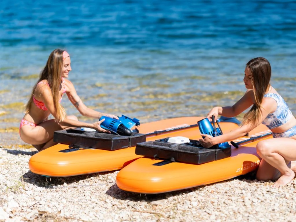 Motor je kompaktní elektrický pohon, který se jednoduše zasune místo zadní flosny a během pár sekund promění paddleboard v e-SUP. Nabízí dvě rychlosti v rozmezí 3–6 km/h a na jedno nabití vydrží přibližně 30–60 minut. Ovládá se bezdrátovým voděodolným ovladačem a je vybaven bezpečnostní pojistkou pro okamžité vypnutí.