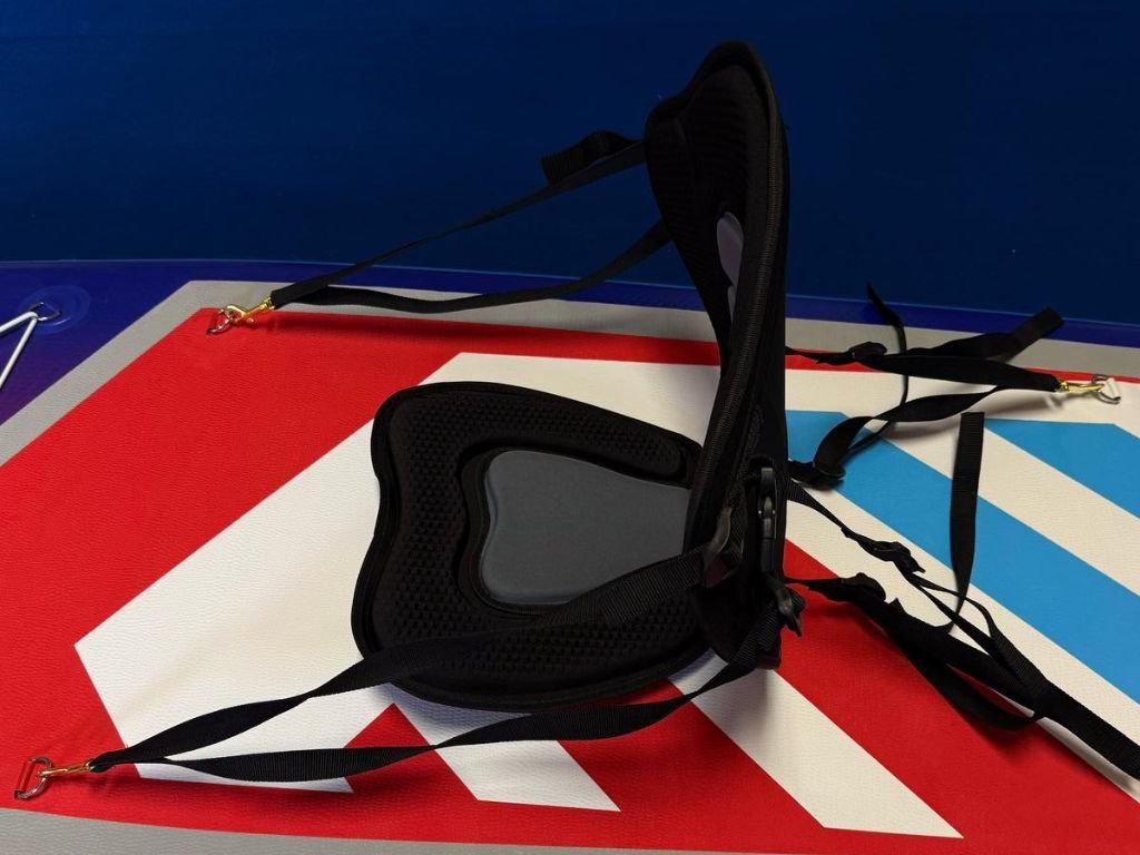 Paddleboard můžeš snadno přeměnit na komfortní kajak díky odnímatelné kajakové sedačce. Ta se jednoduše připne ke kovovým okům na palubě a poskytne ti stabilní a pohodlnou oporu při sezení. Ergonomický tvar a polstrovaný materiál zajišťují pohodlí i při delších jízdách. Sedačka ti umožní efektivnější pádlování a lepší kontrolu nad boardem, zvlášť ve větrném počasí. Lehká, snadno přenosná a rychle upevnitelná.