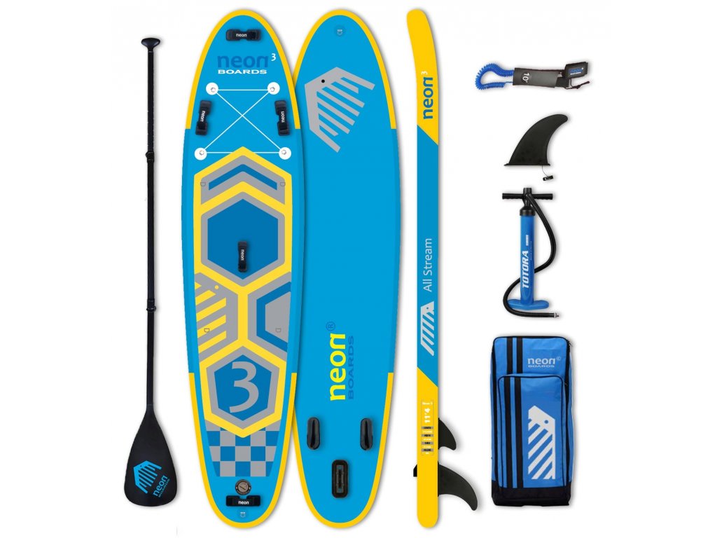 Unikátní paddleboard Neon se speciální funkcí fin, které je možné předělat pro jízdu buď na jezera nebo na tekoucí řeku. Perfektní poměr výkon/cena díky Single layer konstrukci avšak s výbavou těch nejdražších Neon paddleboardů! 11.4.32x6 - 345cm - 81cm - 15cm - Má výtlak 344 litrů - Nosnost 160Kg. Paddleboard Neon 3 je naprostou novinkou a raritou pro letošní rok. Vše je na něm revoluční, počínaje tvarem, přes speciální systém fin, neošoupatelný povrch až po naprosto plnou výbavu, nevyskytující se na levnějších modelech paddleboardů.