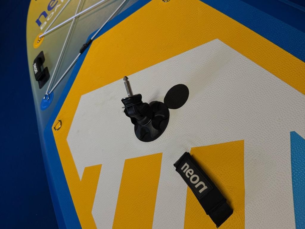 Jde o standardní závit M8, který je umístěn přímo na palubě paddleboardu a slouží k uchycení windsurfingového kloubu (kardanu). Díky tomuto závitu lze jednoduše a pevně připojit jakýkoliv windsurfingový kardan se šroubem M8 – bez potřeby dalších adaptérů nebo úprav. Závit je pevně zalisován v plováku, takže zajistí stabilní a bezpečné uchycení plachty, a umožní tak snadné přestavění paddleboardu na plnohodnotný windsurfingový plovák.